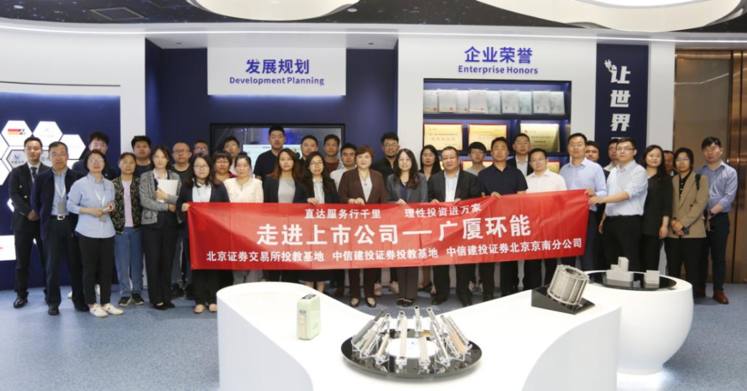 5月21日,北交所投教基地联合中信建投证券投教基地开展“投资者零距离”—走进广厦环能活动。20余名投资者通过实地调研参观,了解公司发展情况,并与公司高管开展面对面的问答交流。通过本次活动,投资者更加了解上市公司,也搭建了投资者与上市公司的良好沟通平台。