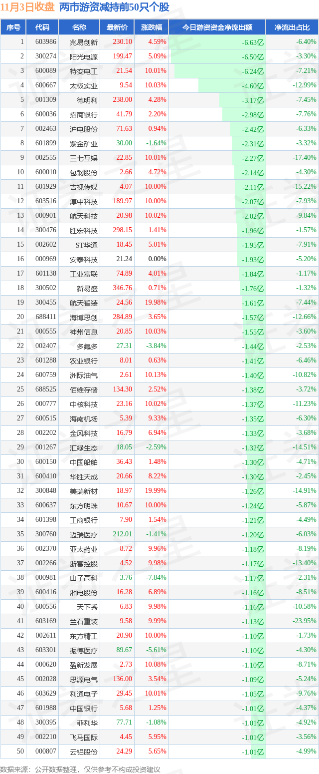 两市游资减持最多的前十只个股为: