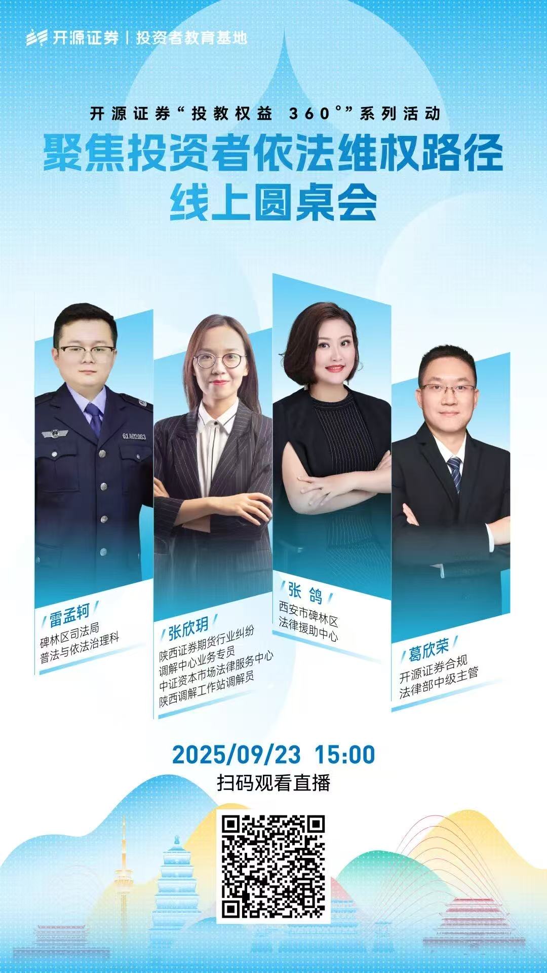 开源证券“投教权益360°”系列活动——聚焦投资者依法维权路径线上圆桌会,即将上线!