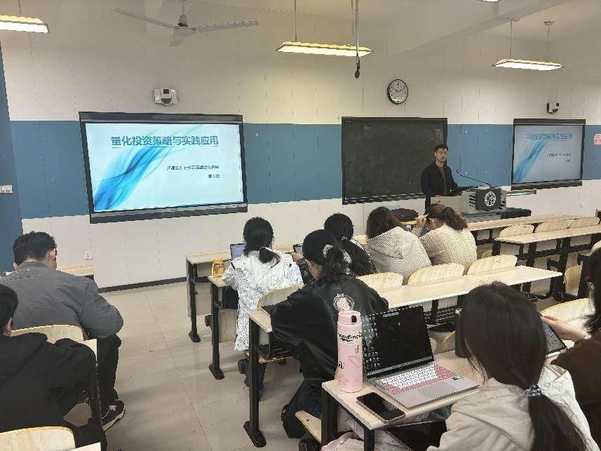 李泰成从量化投资的核心逻辑切入,围绕行业发展状况、量化策略核心、量化策略开发等主题展开深度讲解,针对学生关切的实操环节,他重点解析趋势跟踪、均值回复、统计套利等经典策略,结合回测案例演示量化策略“想法-建模-回测-实盘-风控”全流程,通过仓位管理、实时监控等手段规避过度拟合等风险。同时结合“金融教育宣传周”主题提醒学生警惕投资中的认知偏差,借助量化模型克服情绪干扰,树立理性投资理念。