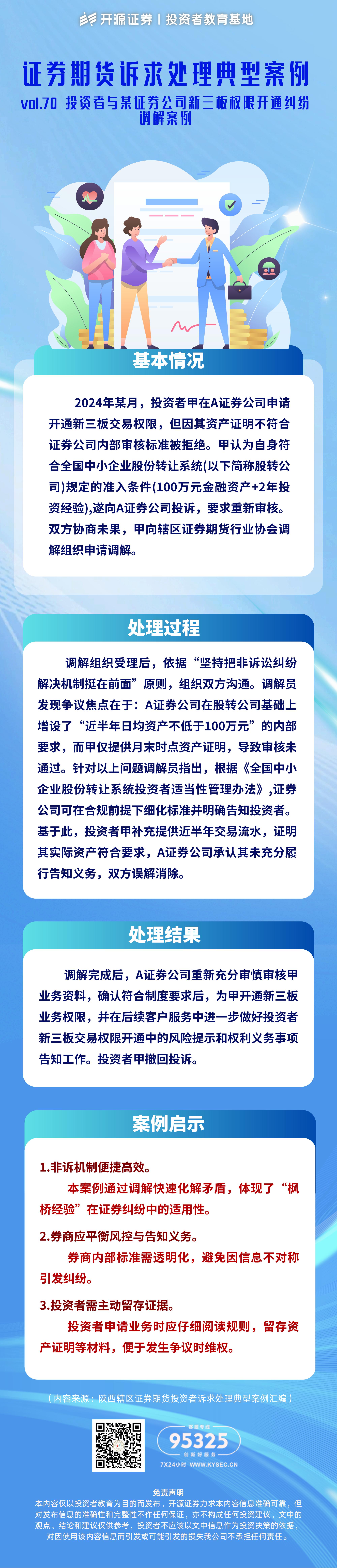 证券期货诉求处理典型案例 | vol.70 投资者与某证券公司新三板权限开通纠纷调解案例