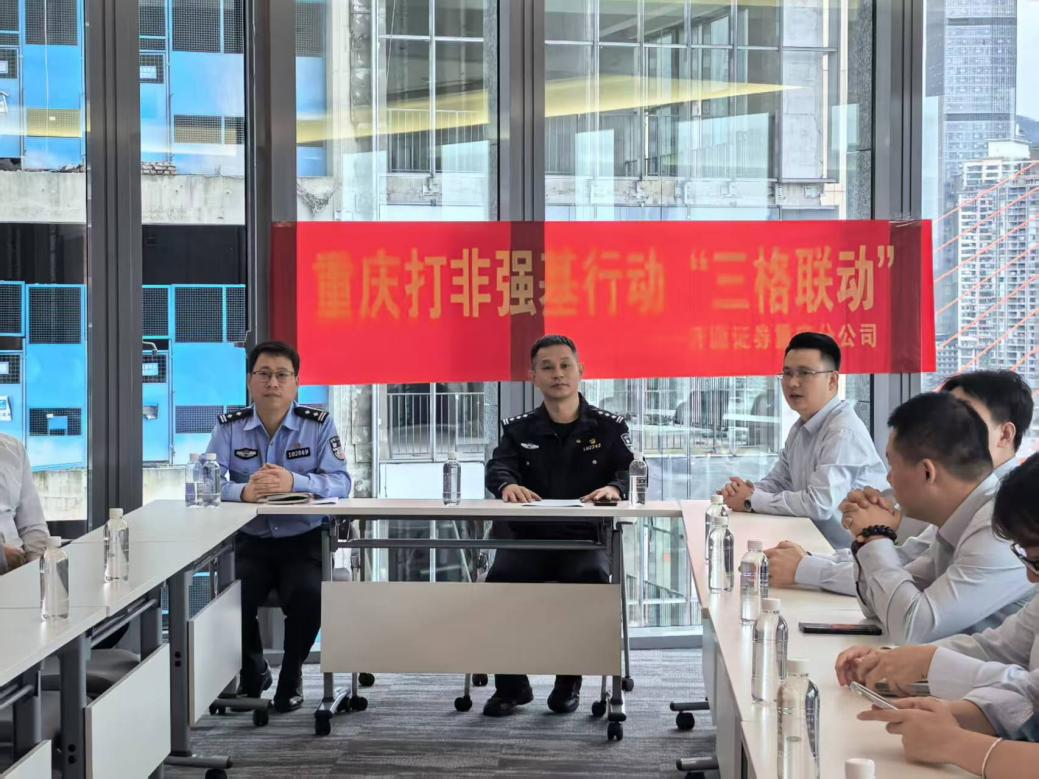 2025年10月21日,重庆市江北分局江北城派出所所长及民警代表一行,应开源证券重庆分公司邀请,前往分公司开展防非交流座谈。活动聚焦防非反诈、投资者权益保护、反洗钱等金融安全议题,旨在通过警企协作,提升风险防控能力,共同守护区域金融秩序。