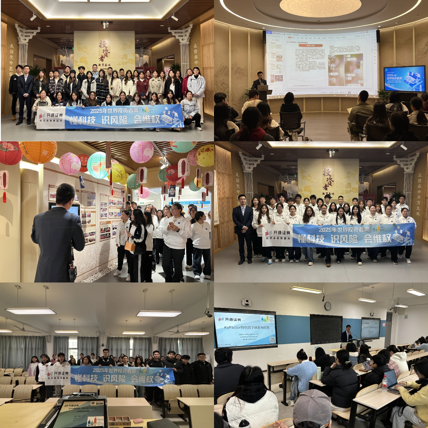活动期间,开源证券联合西北大学、西安外国语大学等多所高校,打造“校园投教课堂”。在证券选修课上,专业的课程让学生学习到《股票策略研究框架》《KY factor特色因子体系与应用》等前沿内容;在投教基地参访中,学生们深刻感受资本市场发展的波澜壮阔,感知中国特色金融文化。