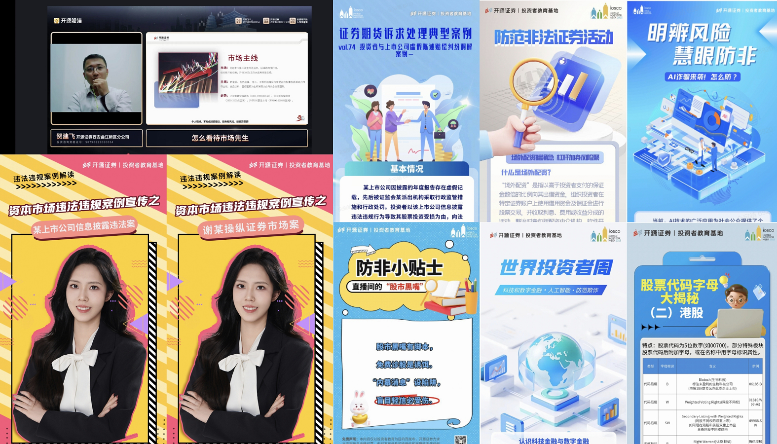 开源证券联动政府部门、行业协会等,走进商圈广场搭建“投资者服务站”,面对面解答来往群众提出的“AI炒股软件靠谱吗”“非持牌机构能荐股吗”等问题,工作人员用“案例+法规”逐一解答,提醒社会公众远离非法荐股,引导投资者依法、理性、科学维权。分支机构也同步开展了“线上答疑+线下宣传”,把投教服务送到投资者“家门口”。