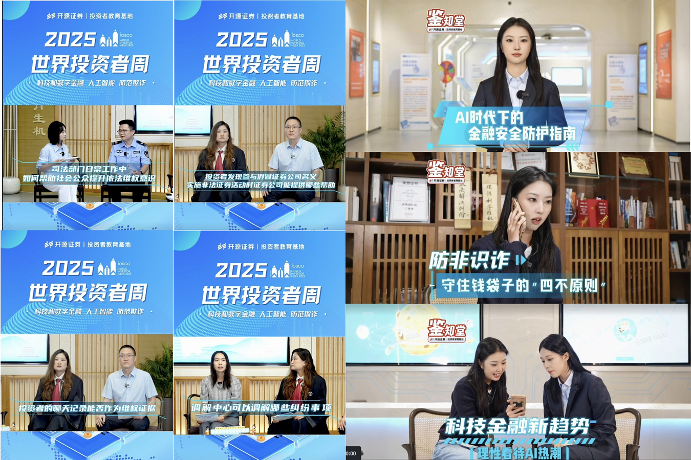 秋光正好,守护随行。在2025年世界投资者周活动期间,开源证券紧扣“科技和数字金融”“人工智能(AI)”“防范欺诈”主题宣传内容,以“金融为民”为引领,打通线上线下传播渠道,针对不同投资者群体开展分层投教,用专业与温度生动书写投教故事,让金融服务浸润人心,为投资者权益保护筑起坚实屏障。