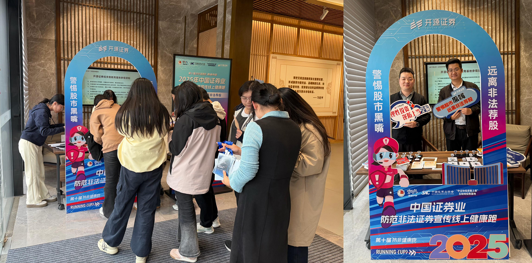 为贯彻落实党的二十届三中全会和中央经济工作会议精神,扎实做好“五篇大文章”推动金融高质量发展,坚持投资者是市场之本工作理念,加大防范非法证券活动宣传力度,更加有效保护投资者特别是中小投资者合法权益,开源证券于10月16日启动第十届“跑遍中国·2025年中国证券业防范非法证券宣传线上健康跑”活动。此次活动以“警惕股市黑嘴 远离非法荐股”为主题,历时20天,报名人数超5000人次,关注超5万人次,完赛用户覆盖全国31个省市区,278个城市,累计里程超过2.5万公里。