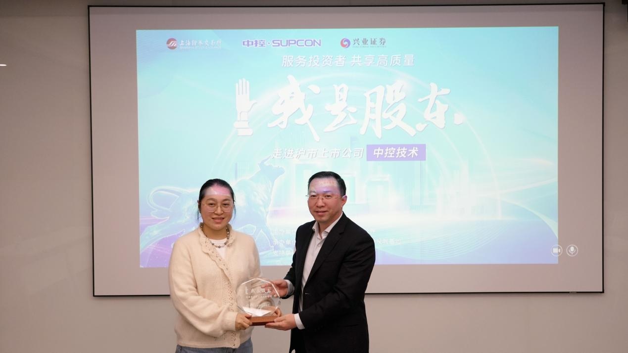 交流会尾声,兴业证券浙江分公司副总经理孙志华先生作为代表向中控技术授予上交所“我是股东”投教活动纪念杯,标志着本次活动圆满收官。