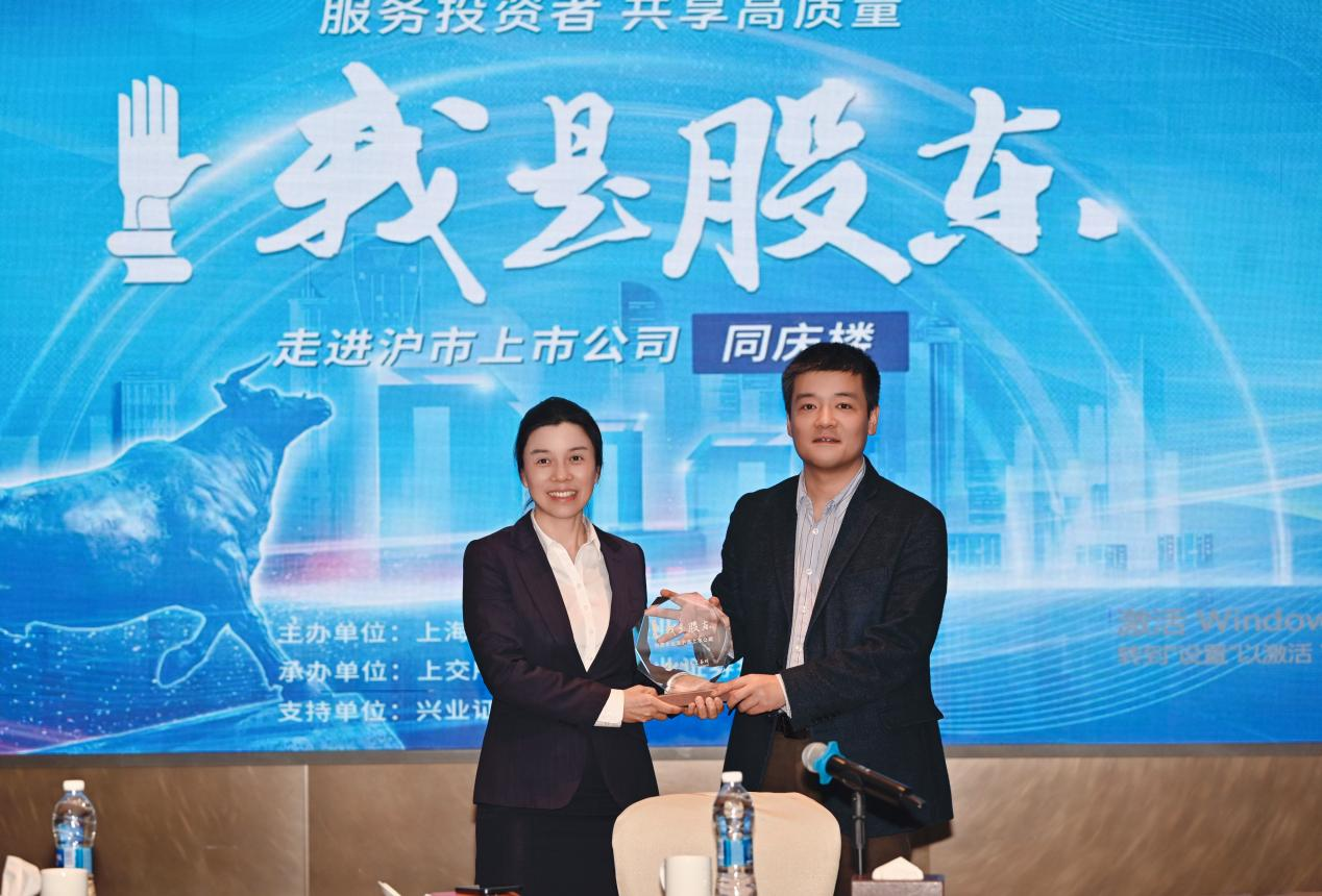 在座谈交流会尾声,兴业证券安徽分公司代表向同庆楼授予上交所“我是股东”活动纪念杯,标志着本次调研交流活动圆满收官。