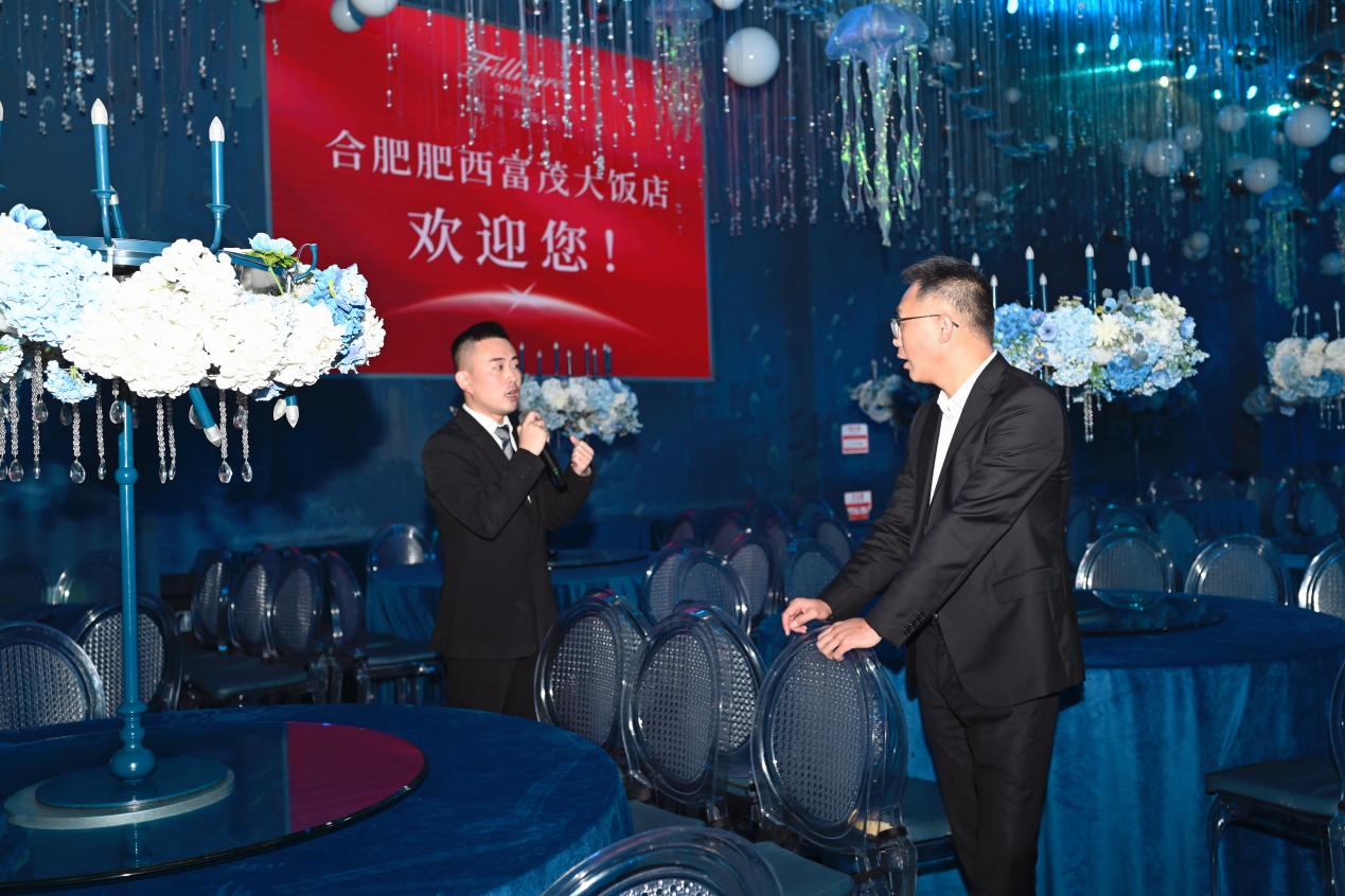 活动伊始,投资者一行来到同庆楼旗下的肥西富茂大酒店。在工作人员引导下,投资者依次参观同庆楼肥西富茂大酒店的梦幻海洋厅、水晶厅、锦绣华宫等宴会厅,此外还参观了酒店的部分客房,直观地了解同庆楼在门店运营以及服务流程中的特色实践,从而对公司的生产经营模式与主营业务概况有了基础的认知。