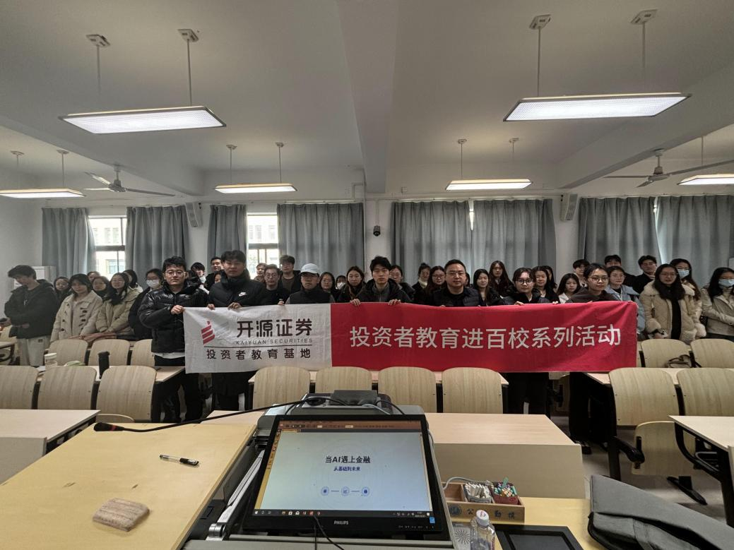 2025年12月23日,开源证券与西北大学联合开设的《证券市场前沿与实务》选修课持续推进,开源证券信息技术中心项目经理利鑫以《当AI遇上金融》为题,为60余名金融专业硕士带来精彩分享,进一步深化投资者教育与高校人才培养的深度融合。