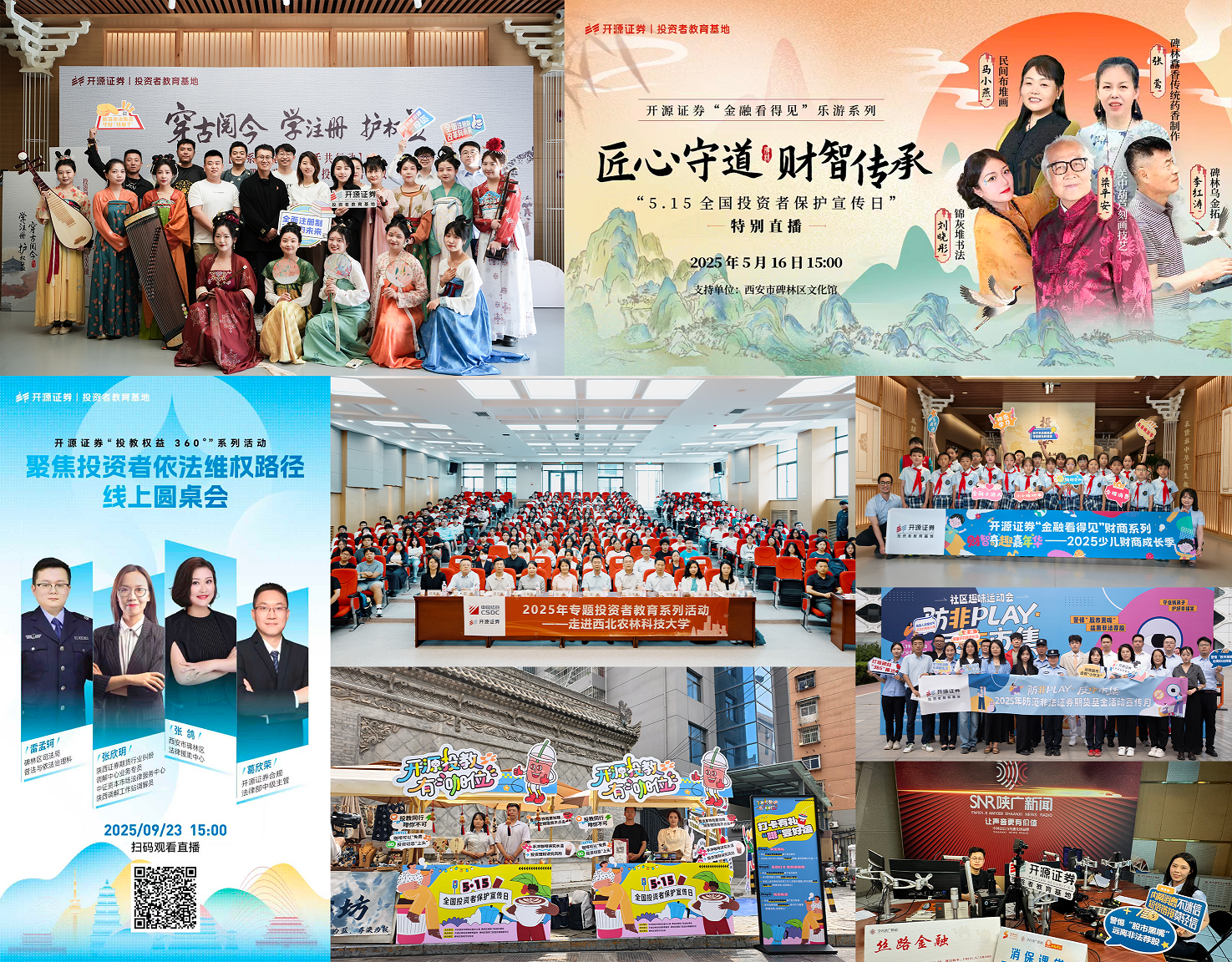 近年来,开源证券的投教创新实践成效显著,投教基地连续三年获评省级考核“优秀”,连续两年获评三所一会投教评估“A类”等次。投教基地累计接待社会公众超7万人次,联动分支机构组织开展的各类线上、线下投教活动5000余场,制作投教产品超4500余种,累计服务覆盖超1.6亿人次。这些成果不仅推动了金融文化的活化传承,更助力提升社会公众的金融素养,也为行业提供了可推广的“文化+投教”新范本,成为行业特色鲜明的投教工作新标杆,充分彰显了开源证券以文化自信筑牢金融强国根基的使命担当。
