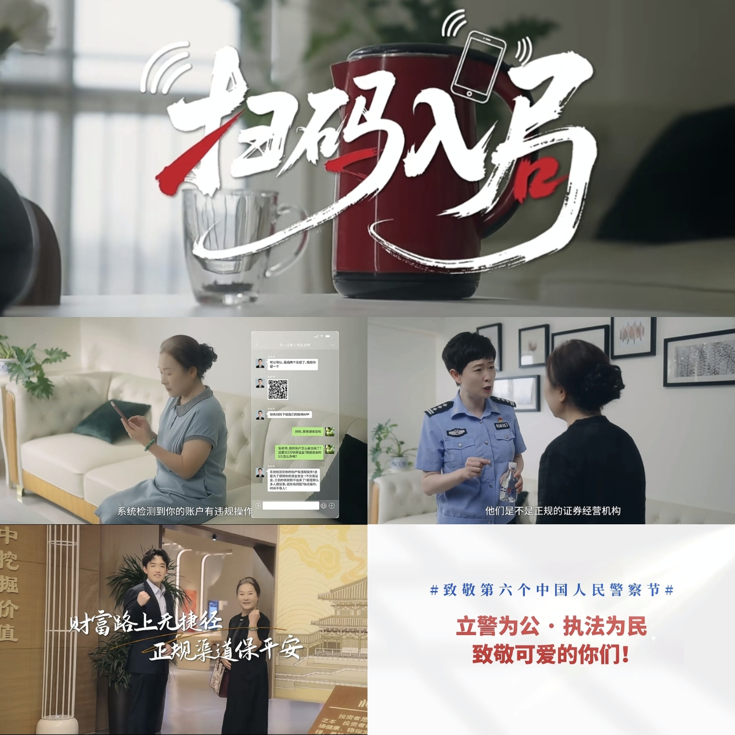 作为雁塔区反诈宣传教育基地,开源证券投教基地始终践行金融企业社会责任,将投资者教育与反诈宣传深度融合。在此次“110警察节”期间,投教基地联合公安雁塔分局共同制作的宣传视频《扫码入局》,以生动直观的形式提醒社会公众扫码要谨慎,引导树立“财富路上无捷径,正规渠道保安宁”的投资认知,并向坚守岗位的民警、辅警致以节日问候,致敬第六个中国人民警察节。