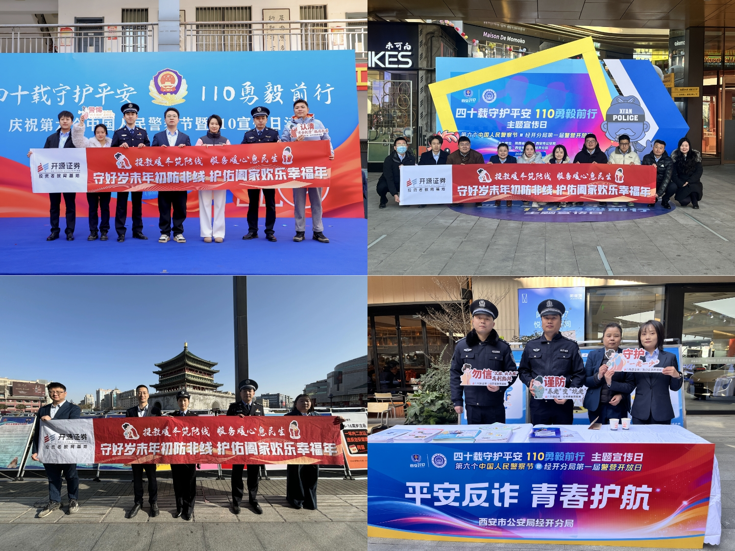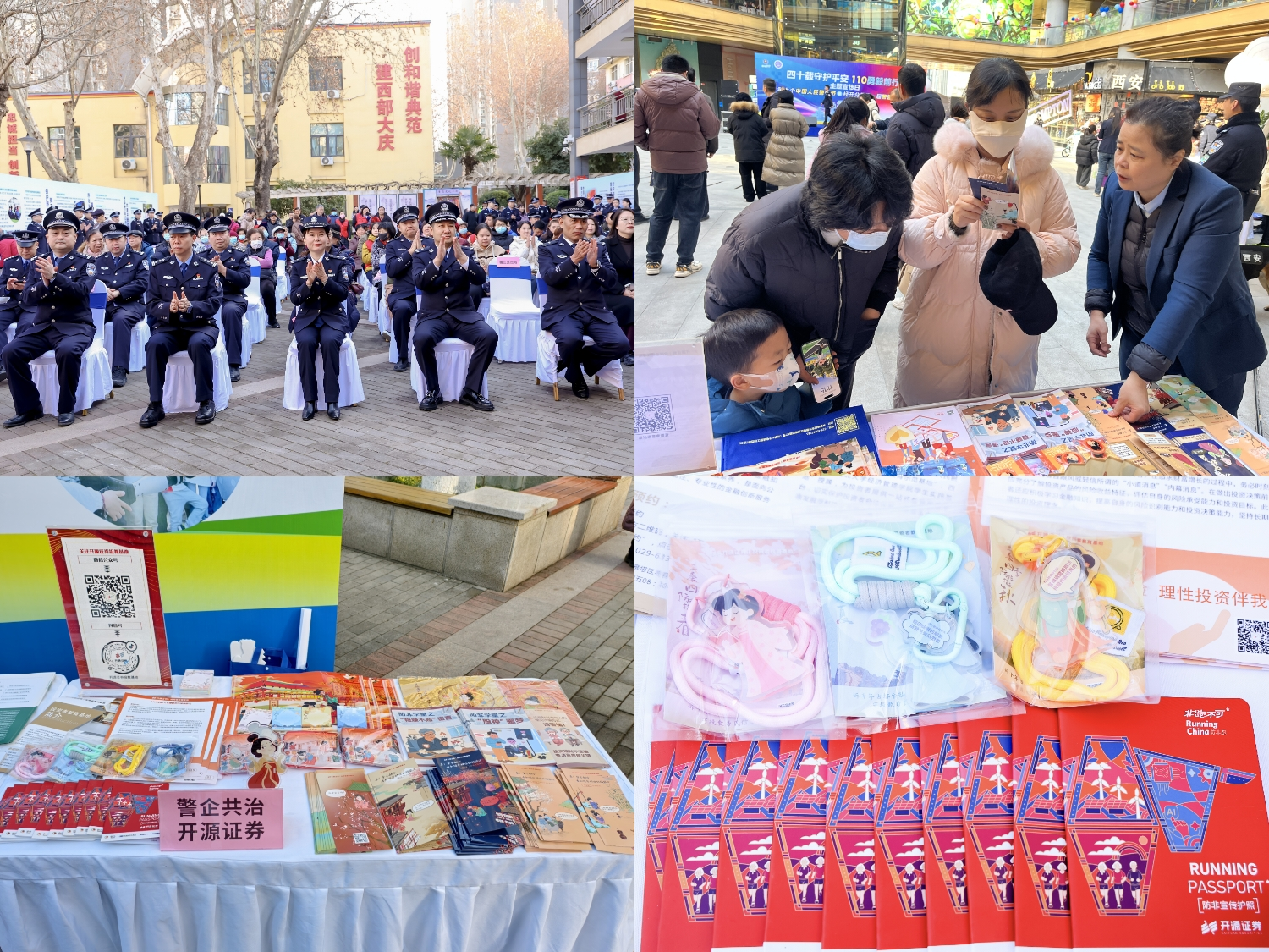 1月10日,在第六个中国人民警察节到来之际,为深化警企反诈协作,筑牢金融安全防线,开源证券投资者教育基地积极响应号召,深度融入辖区“110警察节”系列宣传活动,同步参与西安市公安局及雁塔、碑林、经开等分局的专场活动,形成“一地启动、多点响应、全域覆盖”的宣传态势。活动当天,基地工作人员分赴各宣传点位,围绕金融反诈与投资安全开展场景化、互动化宣讲,以投教力量赋能辖区平安建设,受到现场群众广泛好评。
