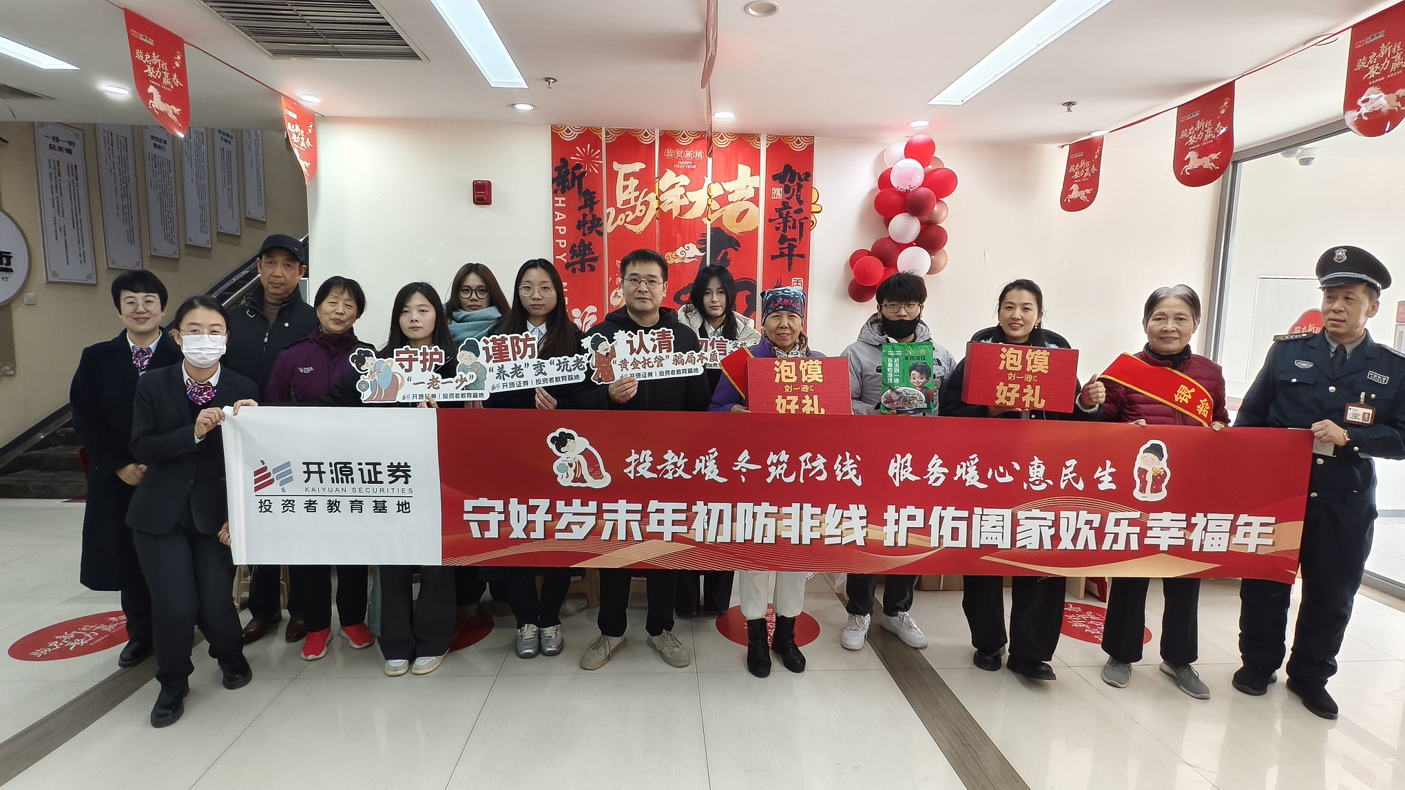 寒冬送暖,年味渐浓。1月21日,开源证券投资者教育基地、雁塔北路营业部携手宁夏银行雁塔路支行,共同开启“投教暖冬”系列——新春便民服务嘉年华活动。活动现场人头攒动、暖意融融,450余名辖区居民、投资者欢聚一堂,在沉浸式体验中感受金融服务的温度、传统文化的魅力与民生保障的贴心。