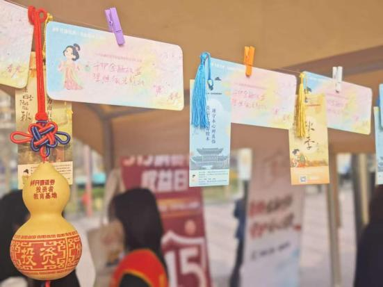 315主题宣传:正面印有“守护金融权益 理性依法维权”,在春日里提示大家:投资者合法权益受法律保护,遭受侵害时选择正规渠道理性依法维权。