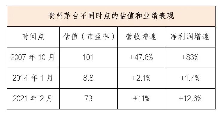 你可能怀疑A股是不是这样。很简单,你只要看看同一支股票比如贵州茅台吧,我列出三个著名时点的估值和业绩表现,你可以自行确认它后续几年的表现。